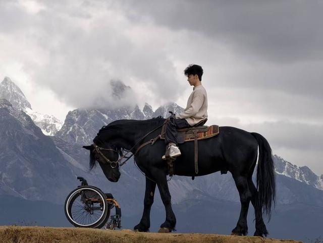这个转变,离不开另一位自媒体博主,良田。2025年11月,良田联系到了马尚在,问他:“有没有一直想做却没做的事?”马尚在想了会儿,回答是骑马。于是,在丽江,马尚在第一次感受到骑在马背上“摆脱了轮椅”的自由。良田与马尚在,还在足球场“复刻”了余华、史铁生那场著名的足球赛,让马尚在当守门员。